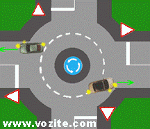 Vozac, pre nego sto stupi na raskrsnicu sa kruznim tokom, proverava situaciju u levu stranu i ukoliko nema smetnji stupa na raskrsnicu.