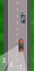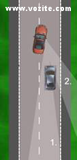 1) Vozac crvenog vozila krece se vecom brzinom i sustize plavo vozilo, odlucuje se za preticanje.