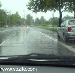 Cesto su vozaci u zabludi da tek orosen kolovoz prvim kisnim kapima ne predstavlja ozbiljnu opasnost. Ali, prasnjav kolovoz, talog ulja i ostaci gume oroseni prvim kapima kise omogucavaju stvaranje tankog sloja sa malim koeficijentom prijanjanja, narocito pri naglom kocenju ili skretanju sto dovodi do zanosenja vozila.